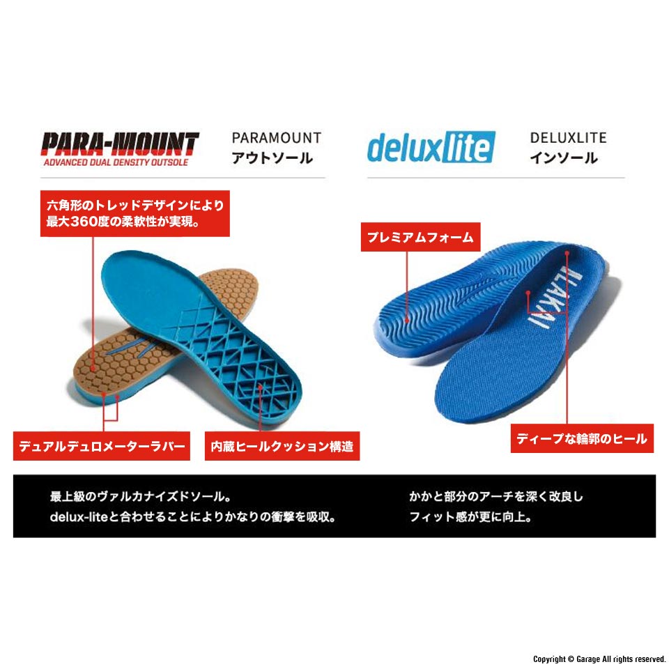 PARA-MOUNT アウトソールと、DELUX-LITE フットベッドを採用し抜群の履き心地を実現。