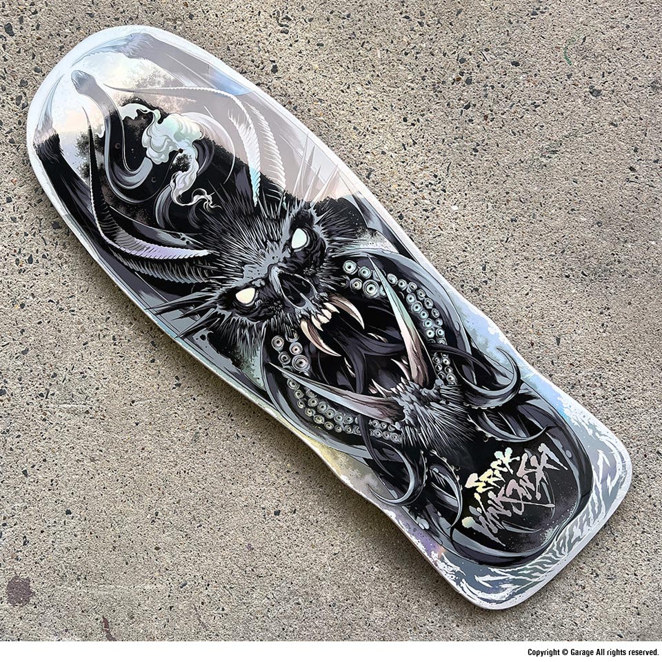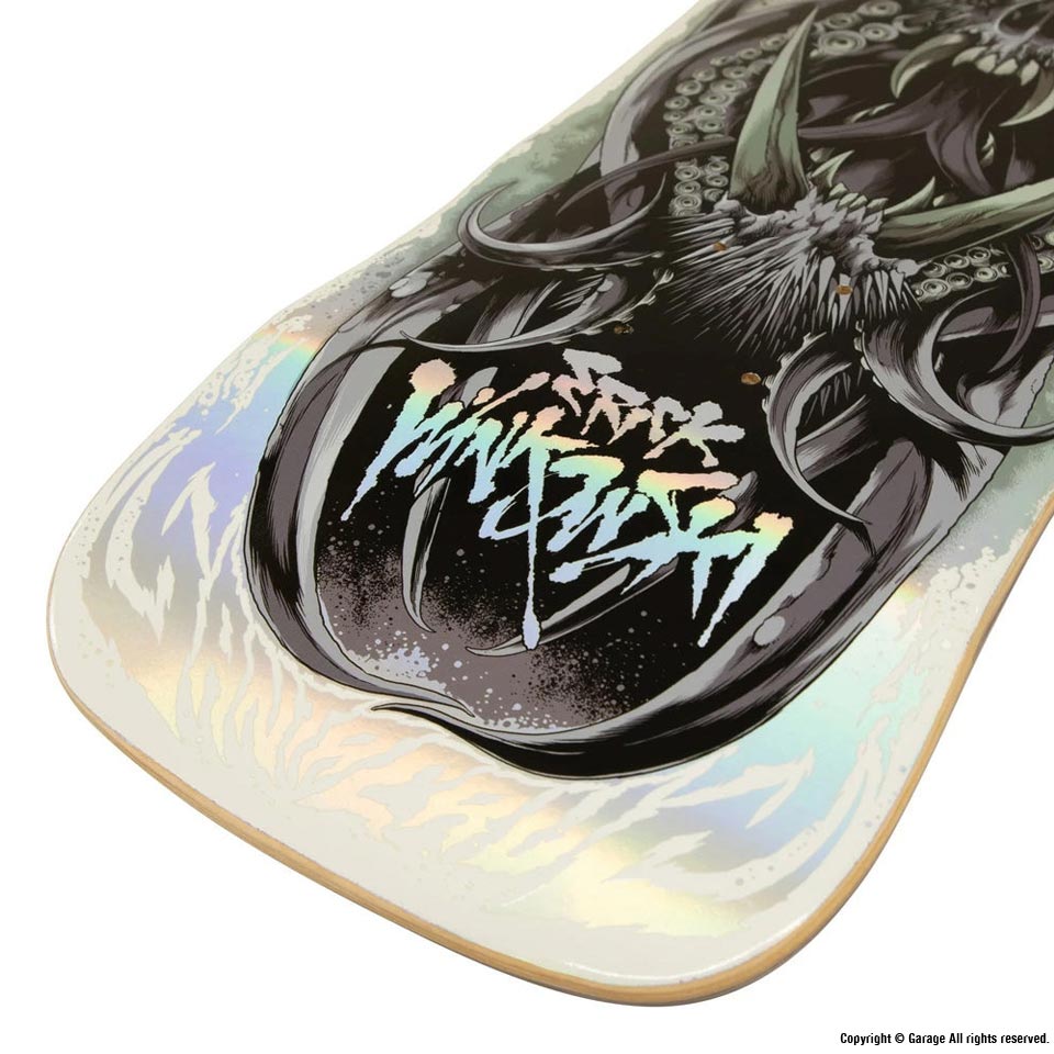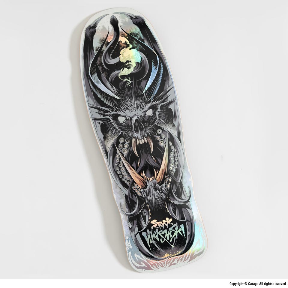 シルバーが輝く1枚。ERICK WINKOWSKI モデルのデッキです。牙を剥いた獣や蛇のグラフィックが落とし込まれた、迫力のある1枚です。
