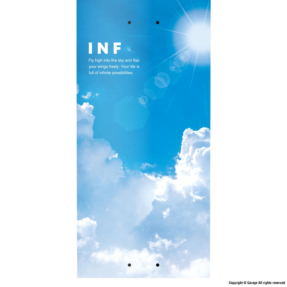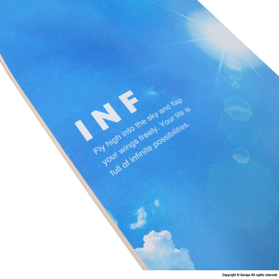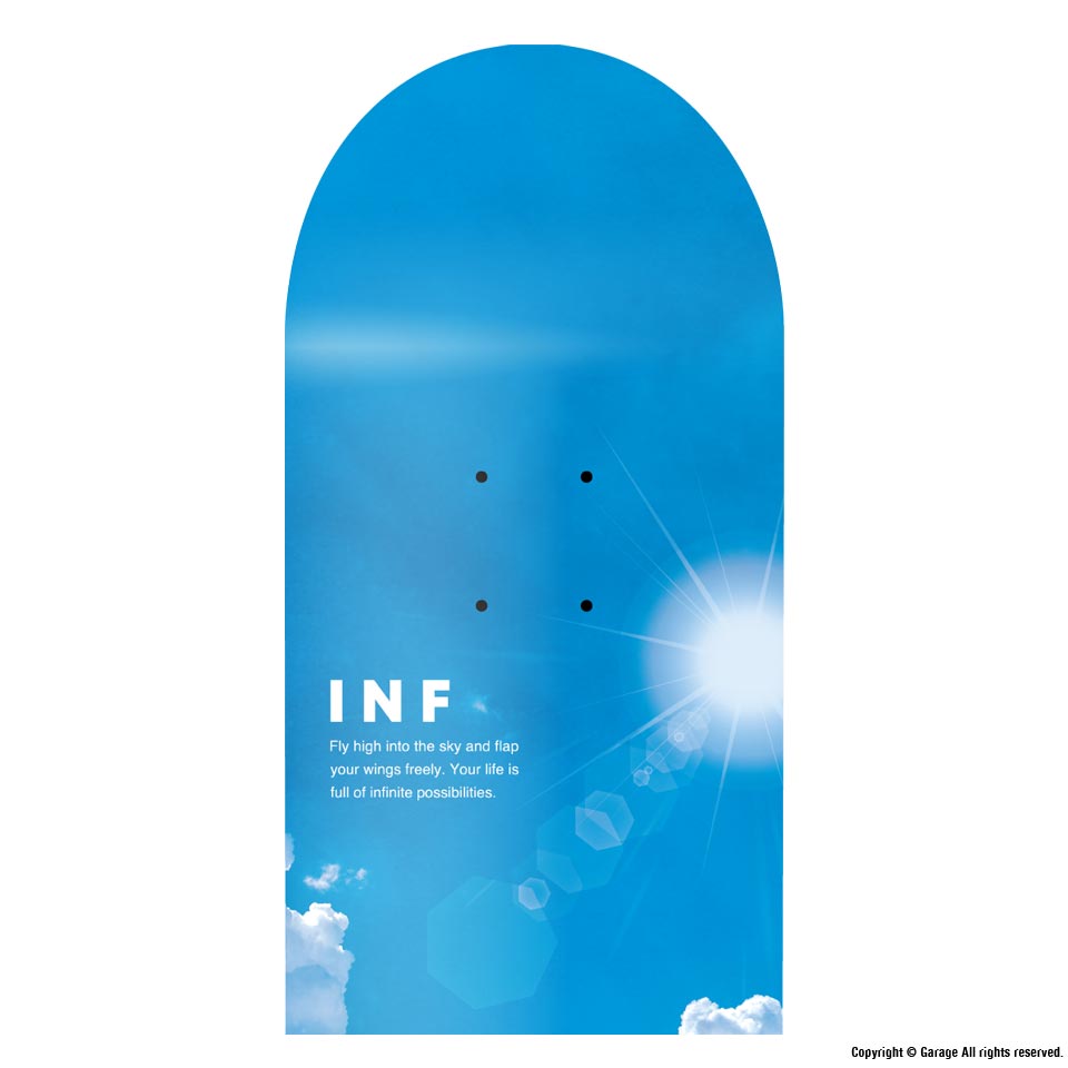 INFINITY SKATEBOARDS の第4弾目となるモデル。鮮やかな青空が広がるグラフィックです。