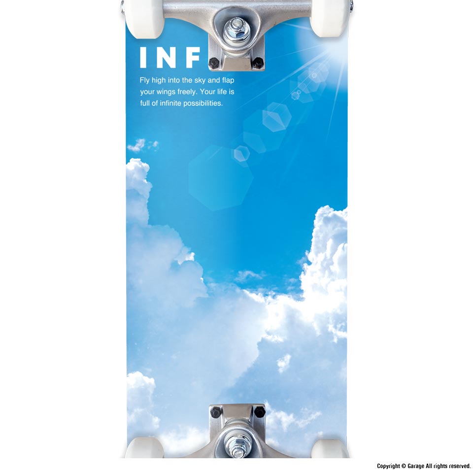 INFINITY SKATEBOARDS の第4弾目となるモデル。鮮やかな青空が広がるグラフィックです。